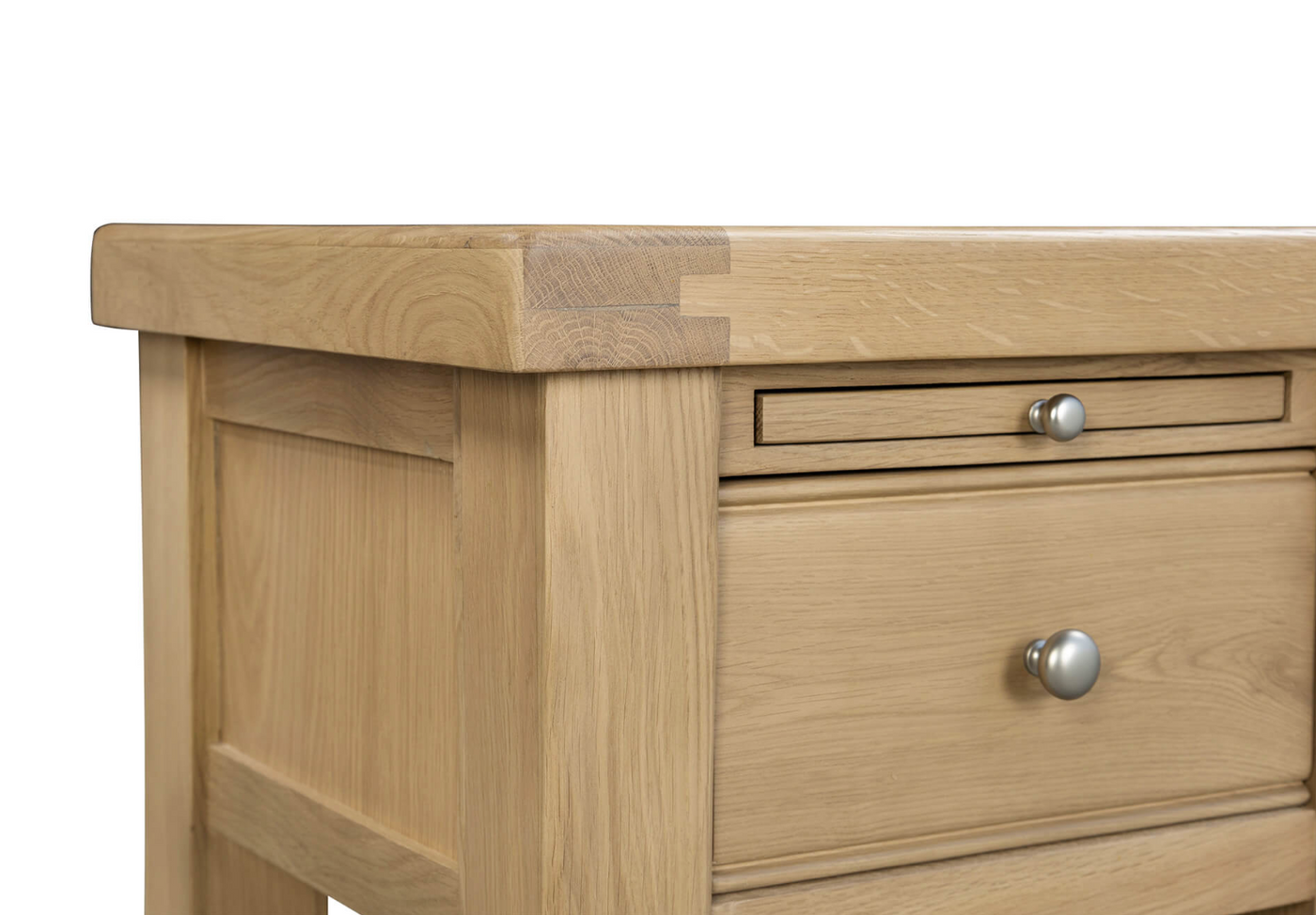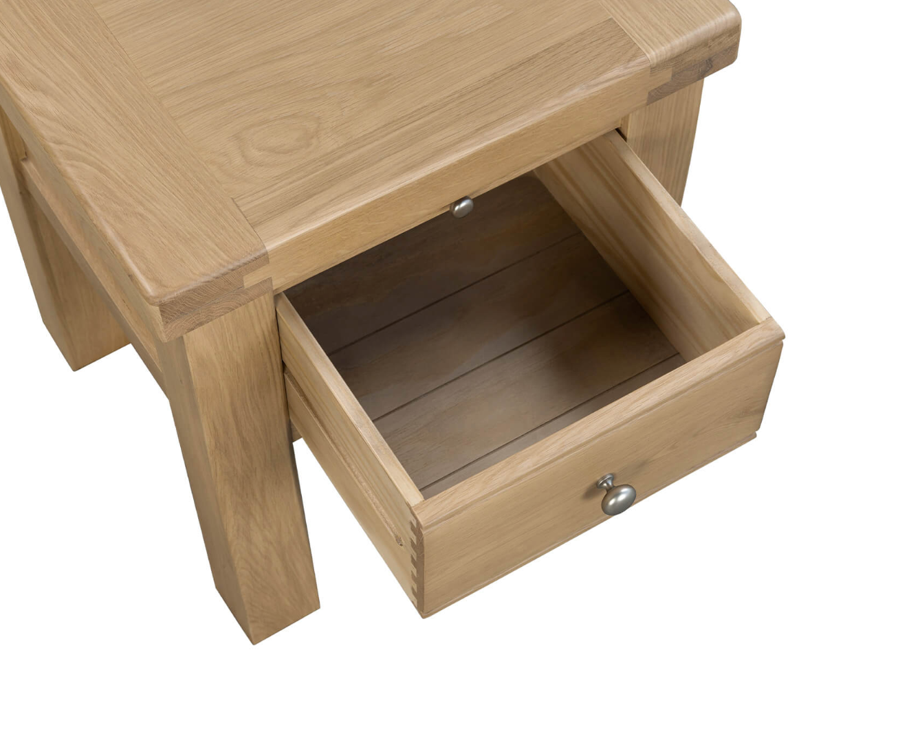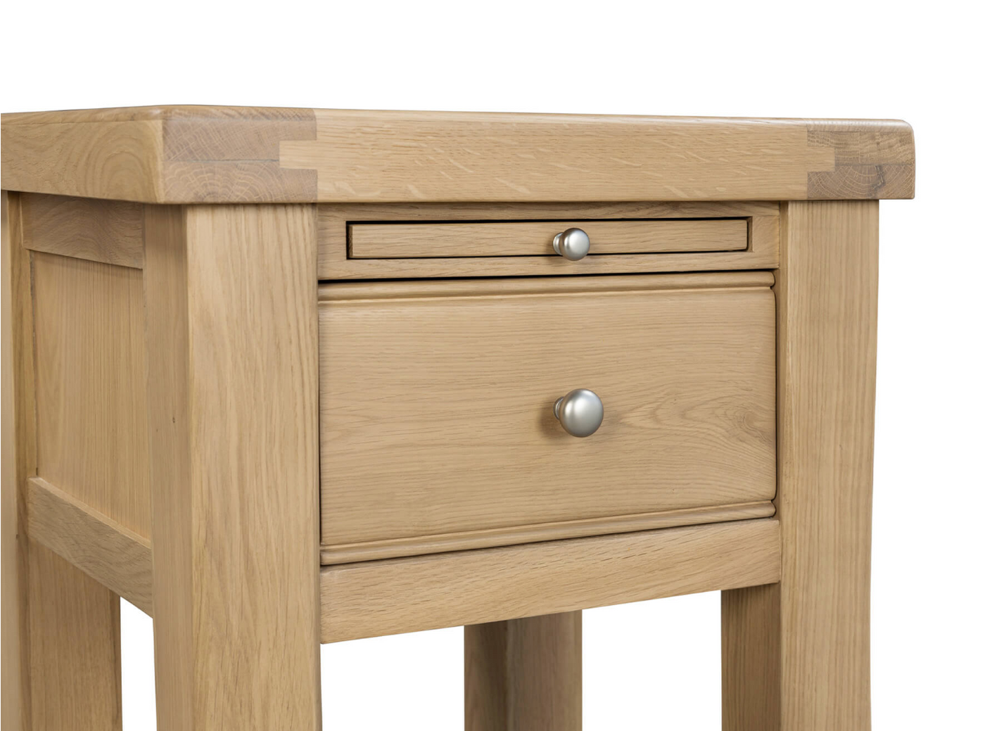 Add timeless charm and functionality to your home with the Delaney Lamp Table in Oak. Expertly crafted from high-quality oak, this elegant table features a classic design that complements a wide range of décor styles.