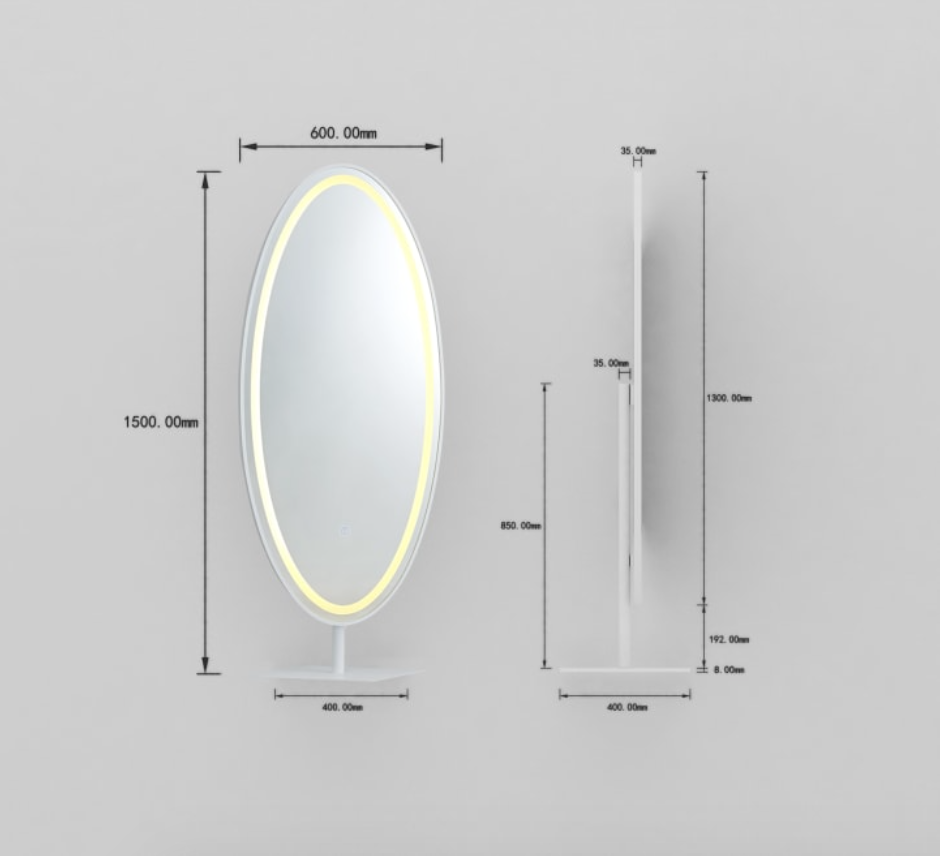 Elevate your space with the Lumia Oval Mirror, a stylish addition that combines function and innovation. Measuring 150 x 60 cm, it features a colour-changing LED, a Bluetooth+ speaker box, and a connected stand, offering the perfect blend of style, sound, and light.